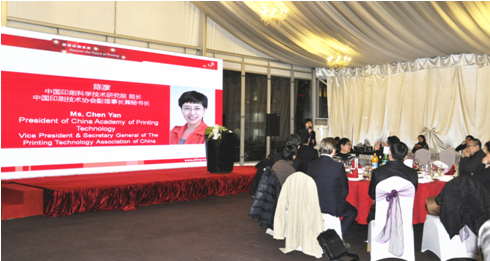 On January 20, All in Print China Shanghai Spring Festival Gala Dinner & Information Communication Meeting drew to a complete close on the beautiful bank of Huangpu River. More than 70 people attended this meeting, including Mrs. Wang Yanbin (Director General of Department of Printing and Distribution, State Administration of Press, Publication, Radio, Film and Television of the People's Republic of China , President of the Printing Technology Association of China), Mr. Lu Zhou (Chief of Printing & Duplicating Division, Department of Printing and Distribution, State Administration of Press, Publication, Radio, Film and Television of the People's Republic of China), Mrs. Chen Yan (President of China Academy of Printing Technology and Vice President & Secretary General of the Printing Technology Association of China), Mr. Heiko M. Stutzinger (Vice General Manager of Messe Düsseldorf (Shanghai) Co., Ltd.), Mr. Li Xinli (President of Shanghai Printing Industry Association), Mr. Chen Bin (President of Shanghai Publishing and Printing College), Mr. Zhou Jianping (Director of Printing Department, Shanghai Administration of Press, Publication, Radio Film and Television), leaders of Shanghai Digital Printing Association and Pudong Printing Association, leaders of famous printing enterprises like Jielong, Xiaolin Printing and Kaixin Printing, and senior managers of over 50 suppliers represented by Xiaosen, Manroland, Synnex Group, Shanghai Yoco, Goss China, Fujifilm, Fuji Xerox, Konica Minolta, Ricoh, NetScreen, EFI, Sun, DuPont, Siegwerk, Pinghu Bindex and Print Home.