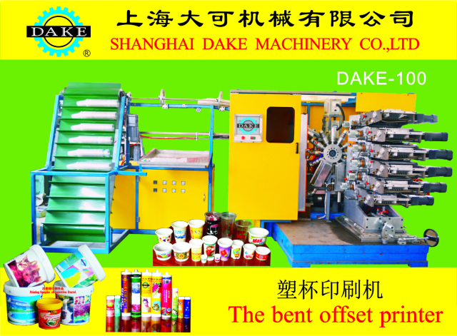 Shanghai DAKE Machinery co.,ltd was founded in 1999,and our main product: The Bent Offset Printer.such as for cup,bowl,barrel,tube,can,lid, etc.