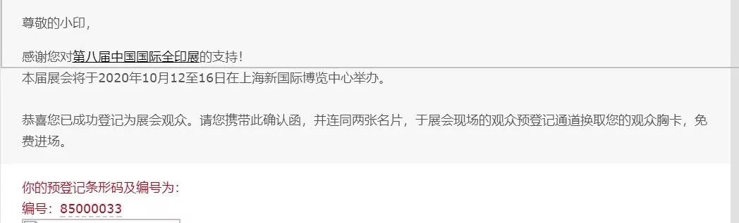 以上兩種提醒方式均表示您已成功完成預登記,成為全印展的VIP觀眾!另外,我們還為預登記觀眾準備了專享抽獎活動!還在等什么?抓緊時間預登記,就有機會領取神秘大獎哦!