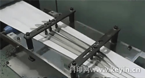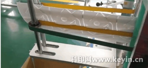 無紡布經(jīng)過三道斜片逐漸收攏,形成折疊結(jié)構(gòu)。