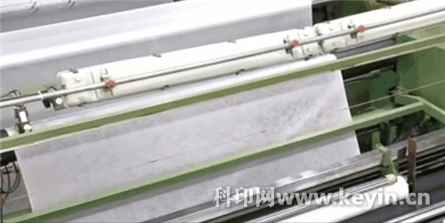 形成褶皺以后的無紡布,經(jīng)過滾筒壓平整。