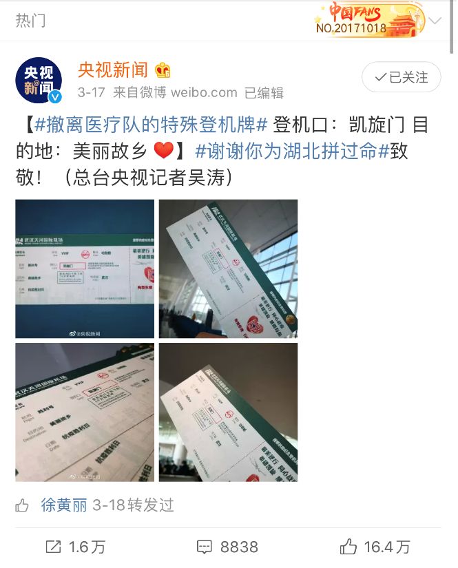 17日起,各地馳援武漢的白衣勇士終于可以陸續回家,而這些刷屏的特殊登機牌正是為了表示對援鄂醫護人員的感激和敬意,向他們贈送的援鄂抗疫紀念登機牌。