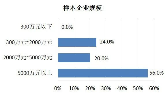 由圖3可知,本次調研大型企業占比56%,中型企業占比20%,小型企業占比24%,無微型企業。