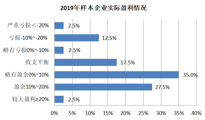 值得一提的是, 2019年所有盈利的樣本企業,均為年收入大于2000萬元的大型和中型印刷企業,其中大型印刷企業占到3/4,業務類型集中在書刊印刷與商務印刷。
