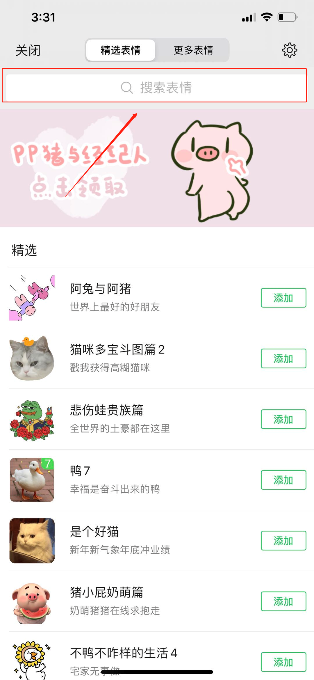 點擊搜索出來的表情專輯