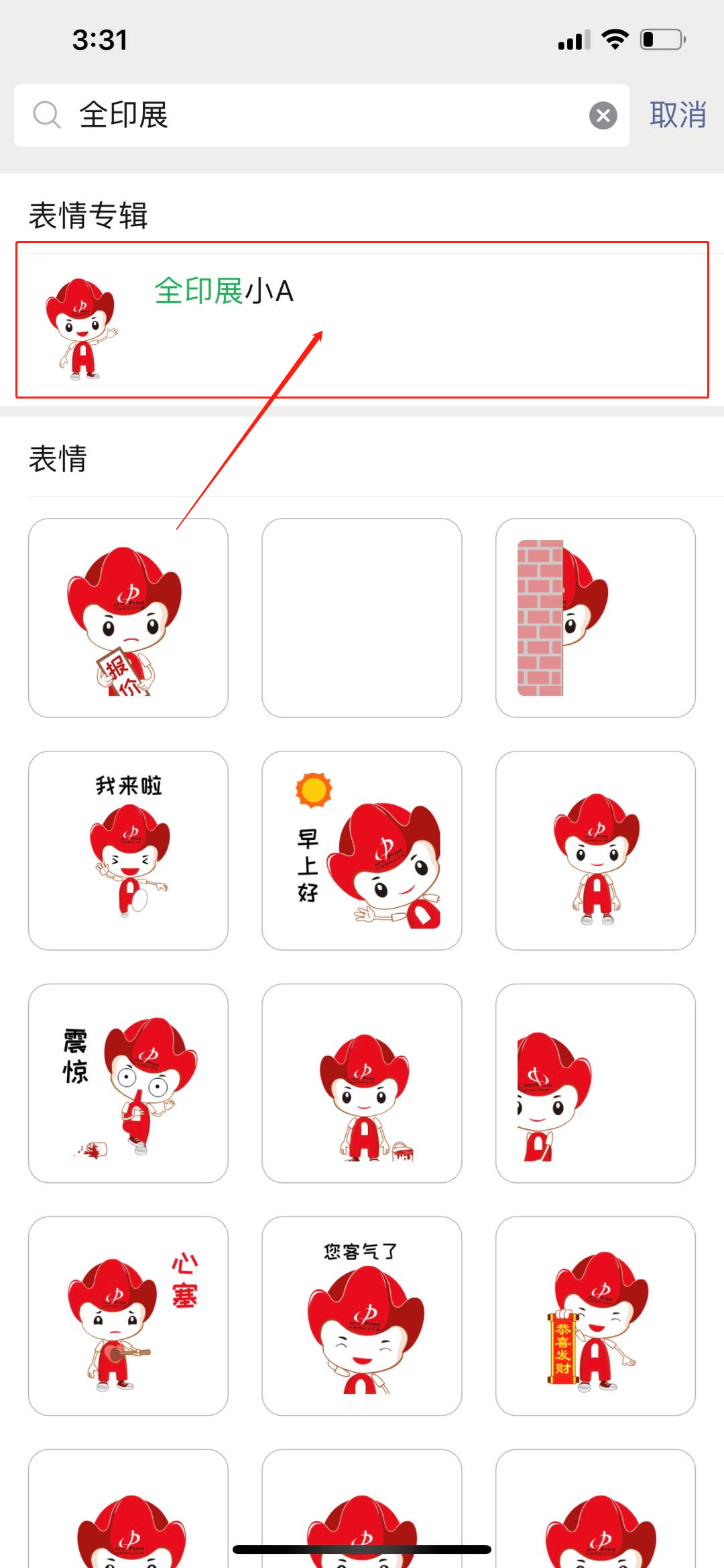 微信表情商城搜索“全印展”