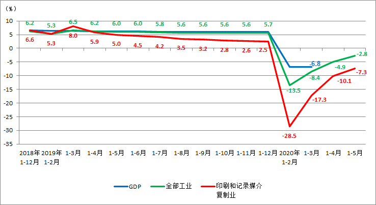 1-5月,印刷業(yè)的工業(yè)增加值累計(jì)增長為-7.3%。雖然繼續(xù)呈現(xiàn)觸底后的回升態(tài)勢,走出“V”型曲線,但盡快擺脫負(fù)增速,仍面臨不少困難和市場壓力。