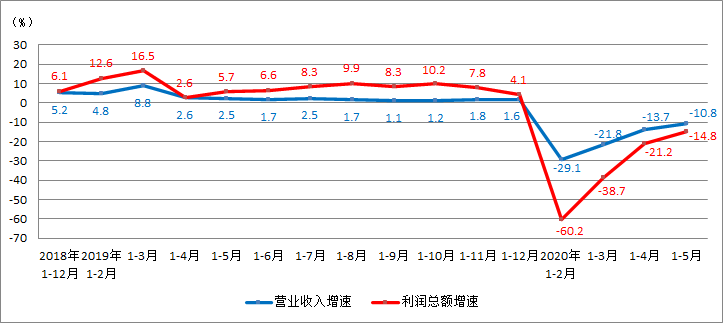 2020年1-5月,印刷業(yè)規(guī)模以上企業(yè)實(shí)現(xiàn)利潤總額,同比下降14.8%。相比1-4月的21.2%,降幅進(jìn)一步收窄,盈利狀況進(jìn)一步改善。同時(shí)期,全部工業(yè)規(guī)模以上企業(yè)實(shí)現(xiàn)利潤總額,同比下降19.3%。