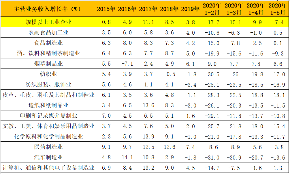 具體來看,農(nóng)副食品加工業(yè)、食品制造業(yè)等食品類行業(yè),延續(xù)穩(wěn)定回升態(tài)勢,并成功在5月份累計(jì)增速轉(zhuǎn)正。酒、飲料和精制茶制造業(yè),增速依然相對低迷。