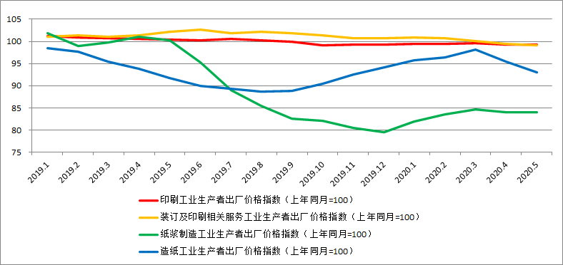 2020年1-5月,印刷與裝訂的價(jià)格指數(shù)變化相對平穩(wěn),均在100線附近窄幅波動(dòng),未出現(xiàn)明顯的價(jià)格波動(dòng)。