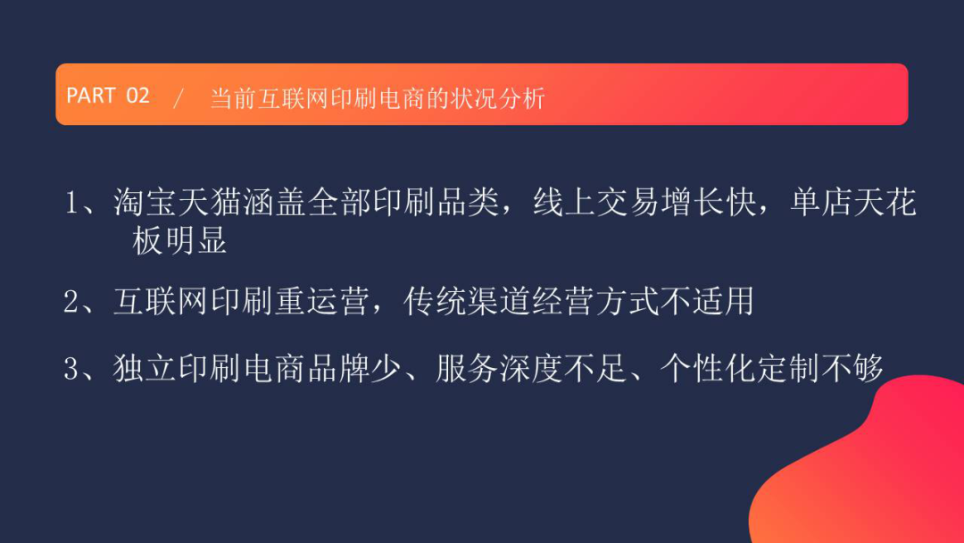 過去互聯網印刷的失敗是對的事情出現在了錯誤的時間節點。當前個性化定制服務的需求增長迅速,在線設計技術的賦能讓獨立的印刷電商獲得特色的服務能力,這也是獨立印刷電商發展的新機會。