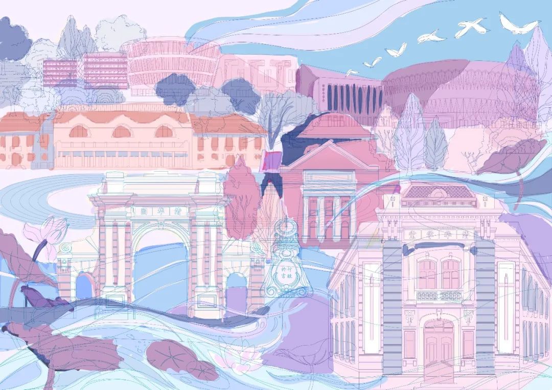 提取校河、荷塘、荷花等清華元素↓↓↓