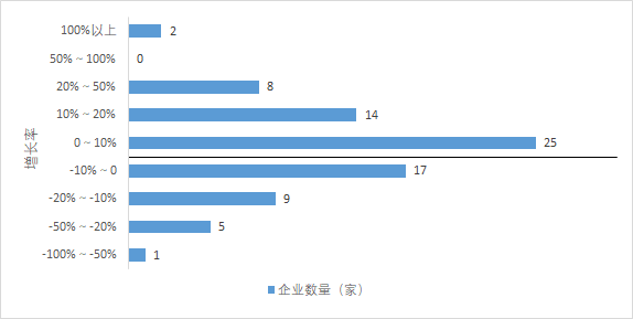 圖3 百強企業(81家)2019年銷售收入增長率情況統計