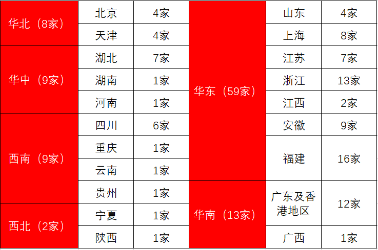 如果按大經濟區加總上述數字,可以看出,華東區是百強企業的匯集重鎮,占據百強榜單接近60%;華南區依然是傳統的百強聚集區;華北區、華中區和西南區平分秋色;西北區有2家企業入榜;而東北地區,今年依然未有上榜企業。