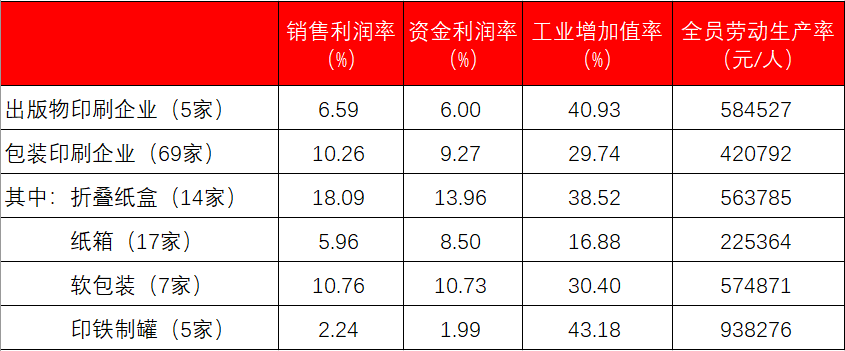 其一,包裝印刷企業的經濟效益,略好于出版物印刷企業。其中,在銷售利潤率和資金利潤率方面,包裝印刷企業優勢明顯,但出版物印刷企業在工業增加值率和全員勞動生產率方面也頗有亮點,在以往的基礎上優勢持續鞏固。