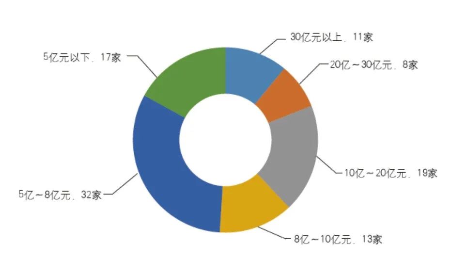 加總今年榜單中百強企業的銷售收入,總值為1375億元,同比增長5.5%。盡管本屆榜單門檻降低、榜首收入下降,但整體規模依然實現正增長。從短短三年時間,30億元集團軍由4家擴容到8家,再到11家等現象可知,百強陣營分化加劇,一些快速領跑的企業拉動了總規模的持續提升。