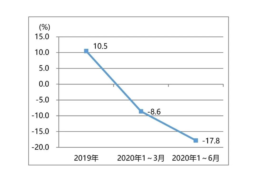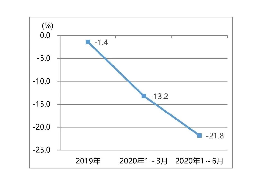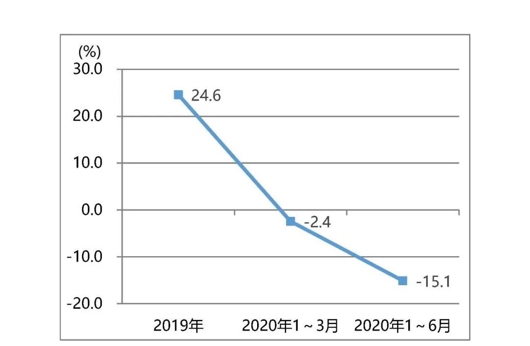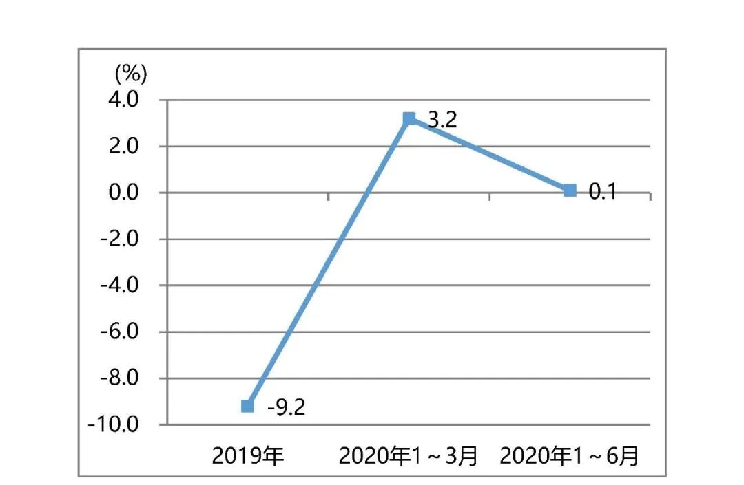 印前設備進口同樣得到改善,2020年1~6月同比下降6.8%,其2020年1~3月降幅達22.4%,如圖7所示。