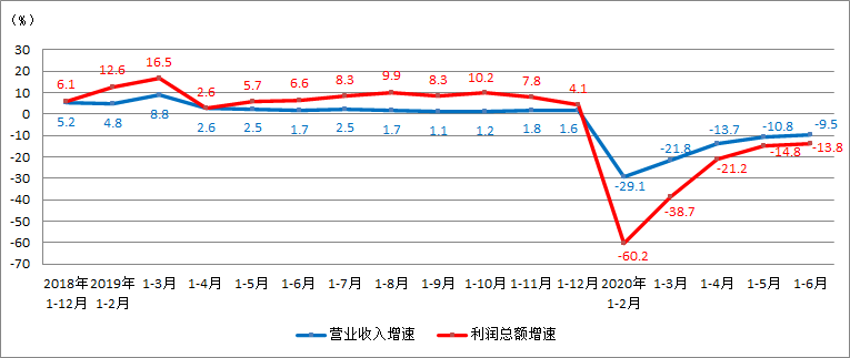 2020年1-6月,印刷業規模以上企業實現利潤總額,同比下降13.8%。相比1-5月的-14.8%,降幅僅收窄1個百分點。同時期,全部工業規模以上企業實現利潤總額,同比下降12.8%,相比1-5月的-19.3%,降幅收窄6.5個百分點。