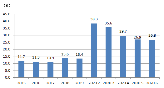 2020年6月,印刷業規模以上企業的虧損面為26.8%。圖3可見,自2月以來,虧損面逐月減少,越來越多的企業擺脫了短期性虧損的困境。但本月數字與上月相比沒有再下降,與去年底13.4%的虧損面相比依然翻番,行業仍處于比較嚴峻的狀態。