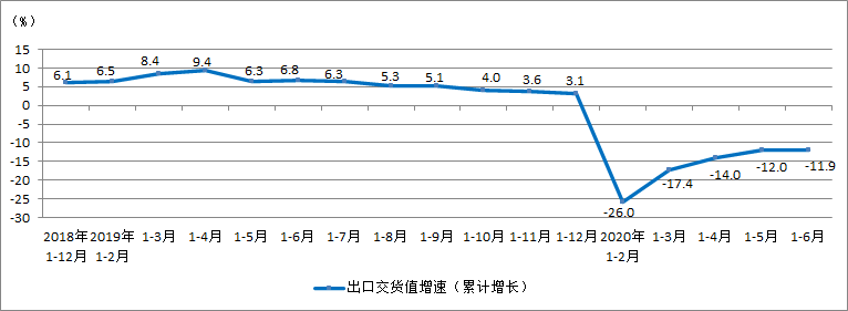 2020年1-6月,印刷業出口交貨值同比下降11.9%,與1-5月同比下降12%相比幾無變化。而在6月,全國工業產品出口交貨值同比增長2.6%,出口降幅不斷收窄。