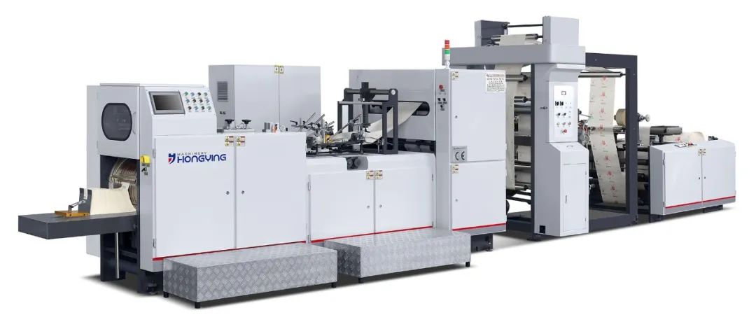 方底卷筒紙袋機,它具有速度快,生產效率高,調價范圍大的優點,綜合國內同類產品不足之處而改進的新型設備,此設備是將原色或印刷好的卷筒紙由本機一次完成側邊上膠,折疊成微,紙筒切斷,底部涂膠,紙袋成型,出袋,整機由計算機中央控制系統控制,觸摸屏顯示,伺服電機控制紙袋長度,可生產多種規格紙袋,最高速度可達到220袋每分,大大減少了人工成本,是紙袋生產加工的首選設備。