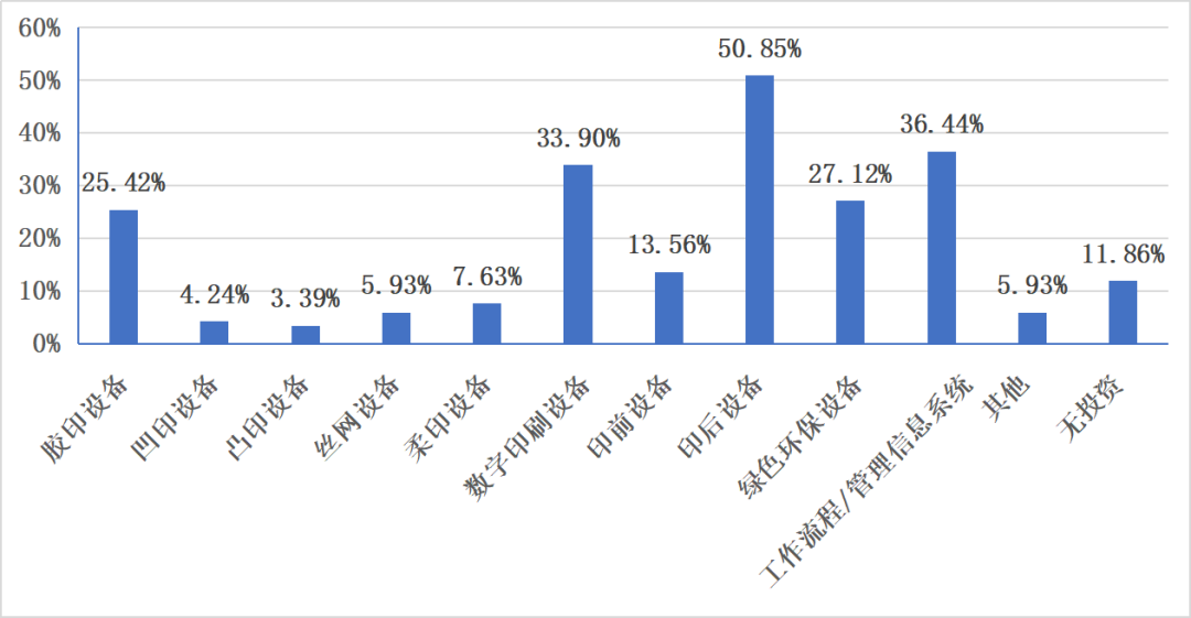 從數(shù)據(jù)分布情況來看,超過一半的印刷企業(yè)依然選擇投資設(shè)備及系統(tǒng),再一次證明疫情下企業(yè)依然保持較為旺盛的投資意愿。