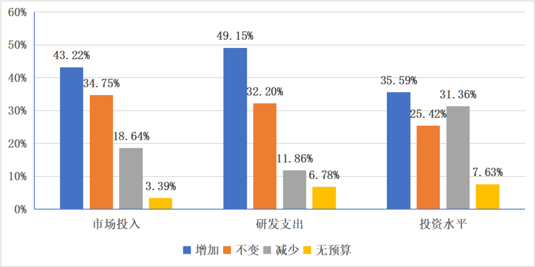 由以上可知,盡管遭遇疫情影響,但大部分印刷企業(yè)保持了企業(yè)規(guī)模和生產(chǎn)工價的穩(wěn)定,并積極通過擴展產(chǎn)品范圍等方式,尋求新的市場空間。(4)企業(yè)市場及研發(fā)投入趨于增加,對于是否投資謹慎樂觀疫情之下,印刷企業(yè)投入情況的變化,也能反映出企業(yè)發(fā)展策略的調(diào)整。