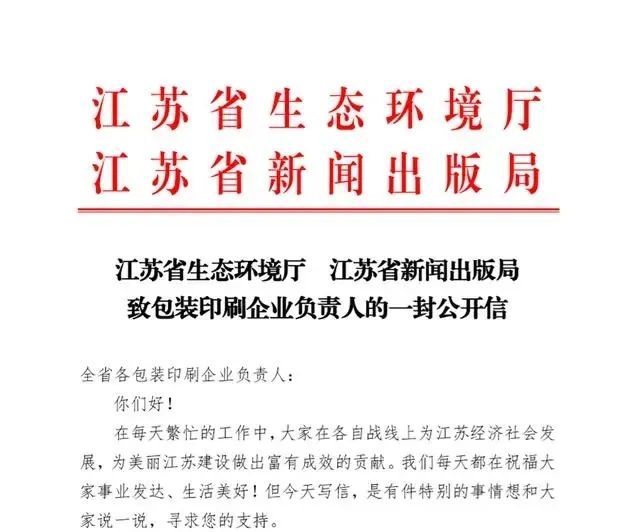 為積極應對夏季臭氧污染,日前,江蘇省生態環境廳、江蘇省新聞出版局聯合致信全省包裝印刷企業負責人。