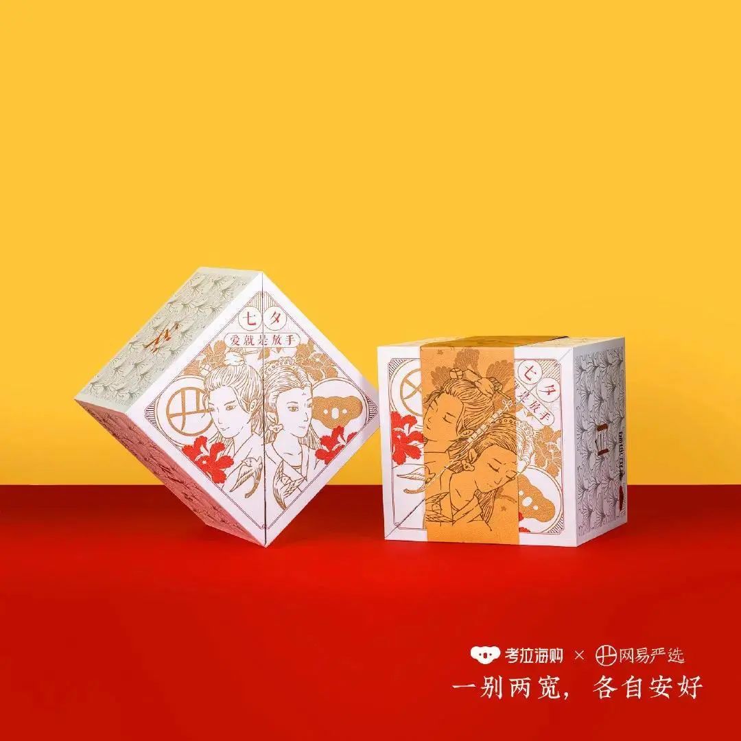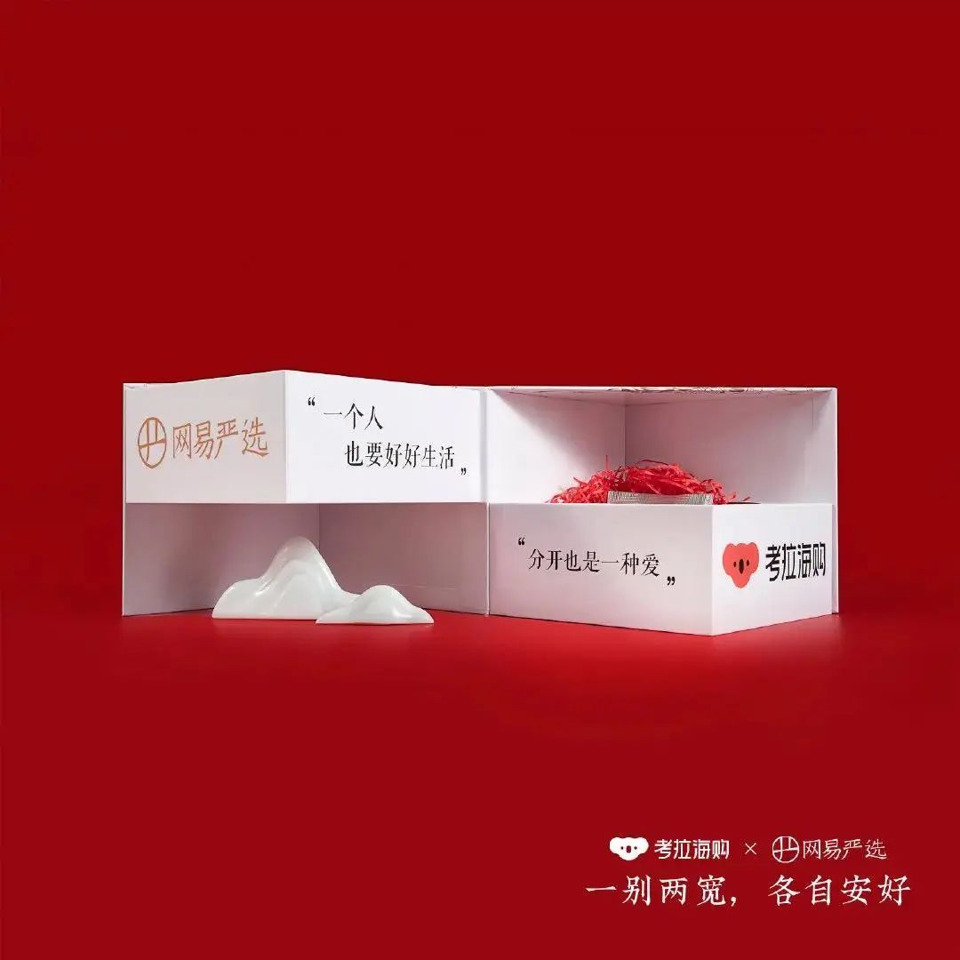 別的品牌的七夕禮盒包裝,都恨不得直冒粉色的泡泡,但考拉海購和網易嚴選竟然出了一款分手一周年禮盒。
