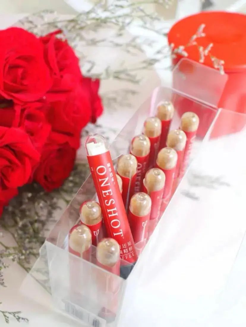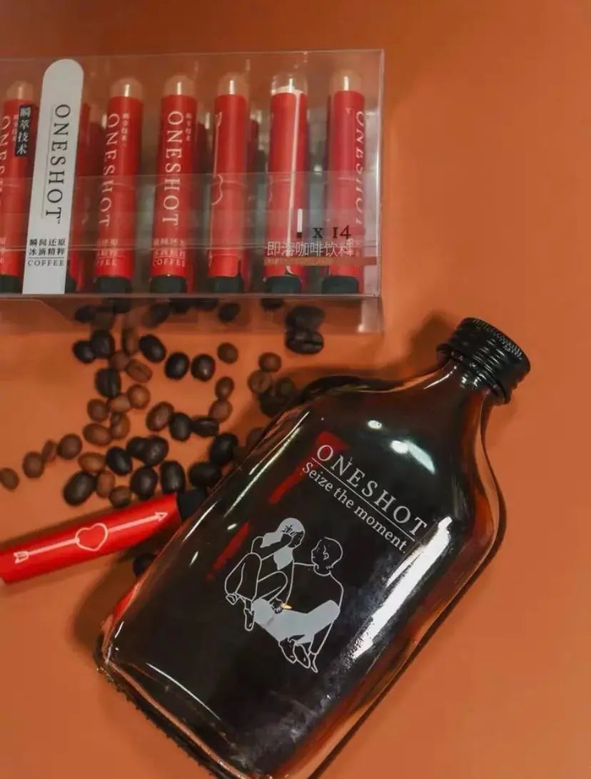 最后便是紀念版ONE SHOT冰滴咖啡,用宇航凍干技術凍成的超即溶咖啡,將其封存在紅色愛心之箭的試管,異形的包裝形象有效形成了產品差異化。另外試管冰滴咖啡還可存放在定制的禮品包,輕便耐用的簡約設計,既能突出七夕紀念款的品牌調性,也實現了產品的使用功能多樣化。