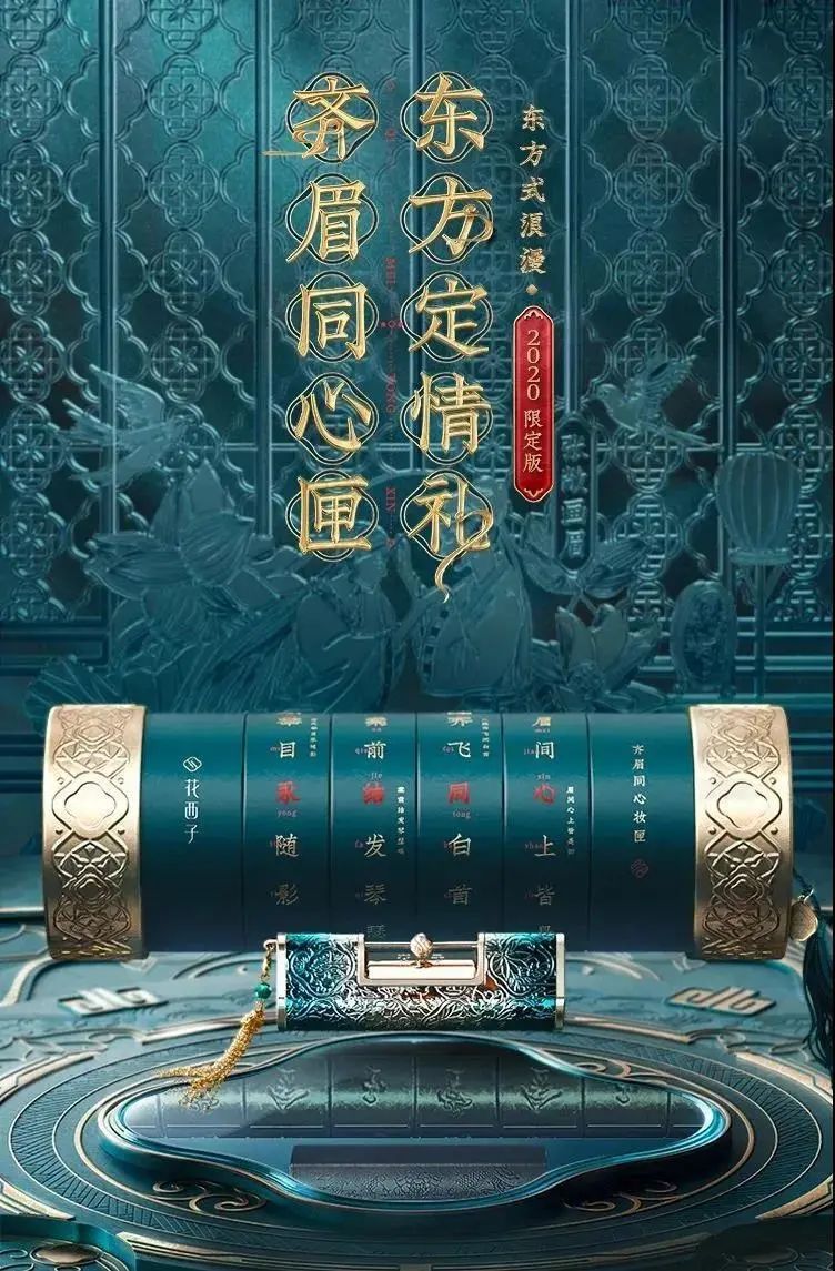 花西子這款2020七夕限定系列延續東方設計美學,外觀復刻明代詩文密碼鎖工藝,以“詩情畫意”、“入骨相思”的文字為密碼,文案細節更是突出了產品的浪漫與深情。