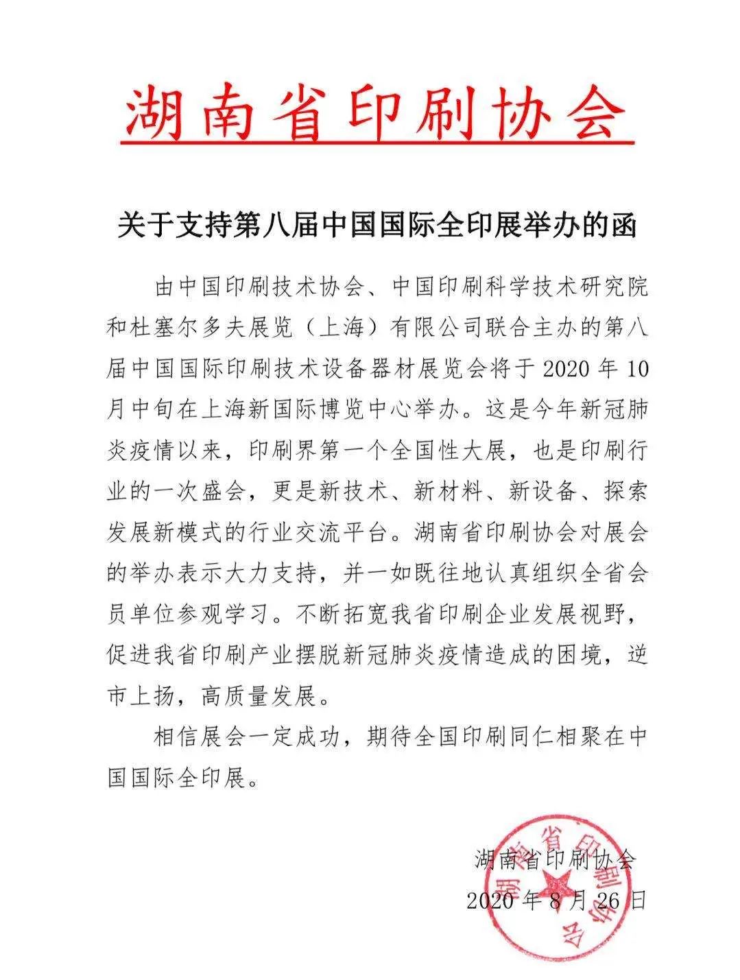 過去的17年中,中國國際全印展在全球印刷人的支持、關心和共同努力下,成長為印刷包裝領域專業化的國際性技術交流和貿易平臺,廣受業界好評。2020年10月12日-16日第八屆中國國際全印展將再次于上海新國際博覽中心如期舉行,成為疫情后印刷包裝行業新品發布、技術交流和貿易對接的首選平臺!特殊時期,以 “ 新智造 新邊界 新動能 ” 為主題的2020全印展得到眾多行業協會的鼎力支持,截止目前,本屆展會已與100余家印刷包裝協會達成了合作意向,預計將有100+協會組團參觀。上次多家協會為全印展來函打call后 全國協會鼎力支持,2020全印展蓄勢以待!我們又陸續收到了許多地區行業協會的來信,大家紛紛表示已組團成功,熱切期待著十月全印展的如期召開