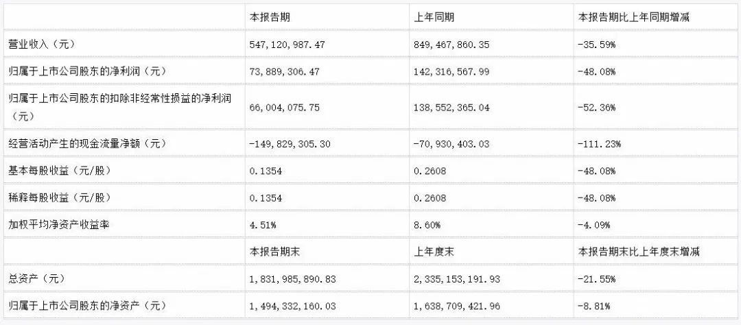 據東港股份2020年半年度報告顯示,報告期內公司實現營業總收入5.47億元,較去年同期減少35.59%,實現歸屬于上市公司股東的凈利潤7388.93萬元,比去年同期減少48.08%。