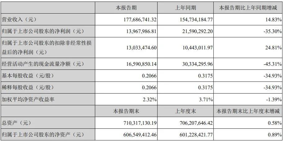 據永新股份2020年半年度報告顯示,上半年實現營業收入12.44億元,比上年同期增長8.04%;歸屬于上市公司股東的凈利潤1.25億元,比上年同期增長17.60%。