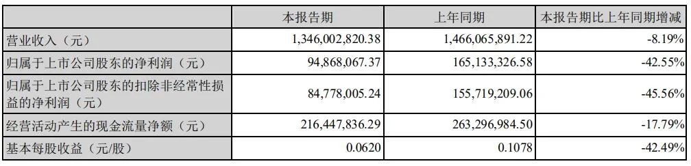據美盈森2020年半年度報告顯示,2020年上半年,公司實現營業收入13.46億元,同比減少8.19%;歸屬于上市公司股東的凈利潤9486.81萬元,同比減少42.55%。