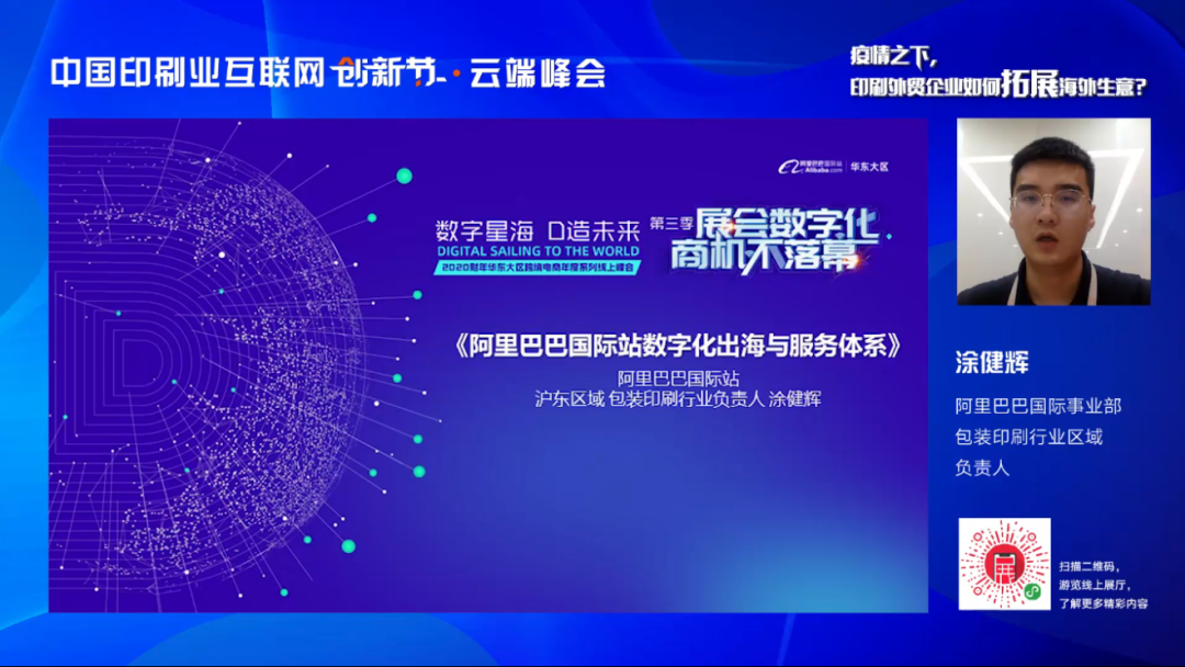 2020年5月26日,由中國印刷科學(xué)技術(shù)研究院、科印傳媒主辦,科印網(wǎng)承辦、阿里巴巴作為戰(zhàn)略支持的2020中國印刷業(yè)互聯(lián)網(wǎng)創(chuàng)新節(jié)·云端峰會在線上成功拉開帷幕。會上,阿里巴巴國際事業(yè)部包裝印刷行業(yè)區(qū)域負(fù)責(zé)人涂健輝以《阿里巴巴國際站數(shù)字化出海與服務(wù)體系》為題進(jìn)行了分享,以下為演講整理。