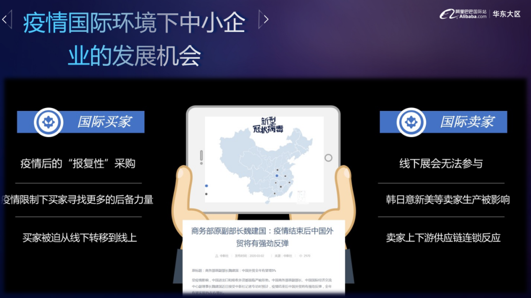 而對于國際賣家來說,線下展會已無法正常舉行,線上已經(jīng)成為我們和海外買家溝通的唯一方式。而像韓國、日本等國家的整個生產(chǎn)也受到了疫情影響,并對生產(chǎn)行業(yè)的上下游造成了連鎖反應(yīng),這對于已經(jīng)正式復(fù)工復(fù)產(chǎn)的我國企業(yè)來說,是一個機(jī)遇。
