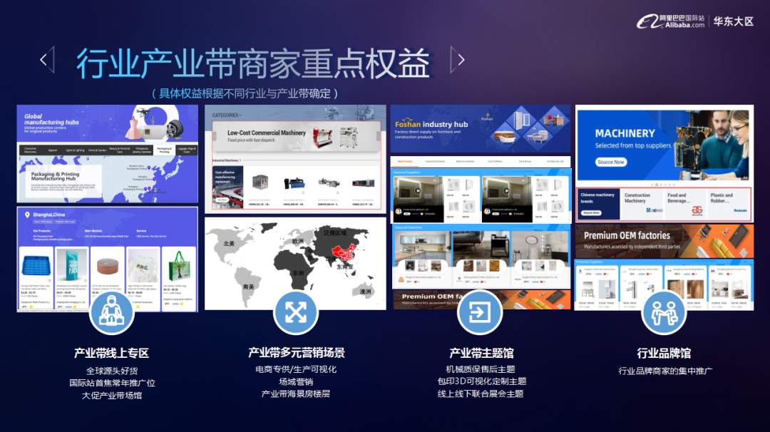 目前,阿里巴巴正嘗試在全國范圍打造包括印包行業(yè)在內(nèi)的重點(diǎn)行業(yè)產(chǎn)業(yè)帶,以上海為主要試點(diǎn),對整個行業(yè)在縱深垂直領(lǐng)域開展招商和育商工作。針對每一個行業(yè)帶的商家,我們會有不同的權(quán)益,并在線上設(shè)立專區(qū)。針對整個印包行業(yè),我們主要劃分為環(huán)渤海、長三角以及廣州深圳三個產(chǎn)業(yè)帶,針對這樣的產(chǎn)業(yè)帶,我們會有線上專區(qū)、各種主題館、品牌館等營銷場景,幫助我們的商家獲取更多的流量。