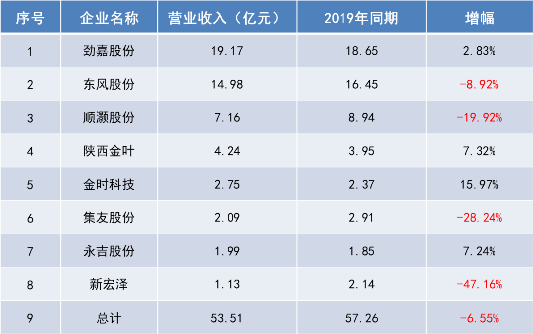 在A股上市的8家煙包企業都已經發布了2020年上半年業績,它們分別是勁嘉股份、東風股份、順灝股份、陜西金葉、金時科技、集友股份、永吉股份以及新宏澤。