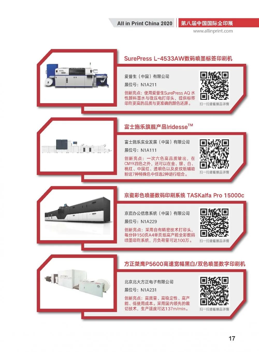 為及時將第八屆中國國際全印展展商展品信息提供給專業觀眾,便利展前對接洽談,中國國際全印展在參展商自愿提供信息的基礎上,將展商展品信息編輯成冊發布。