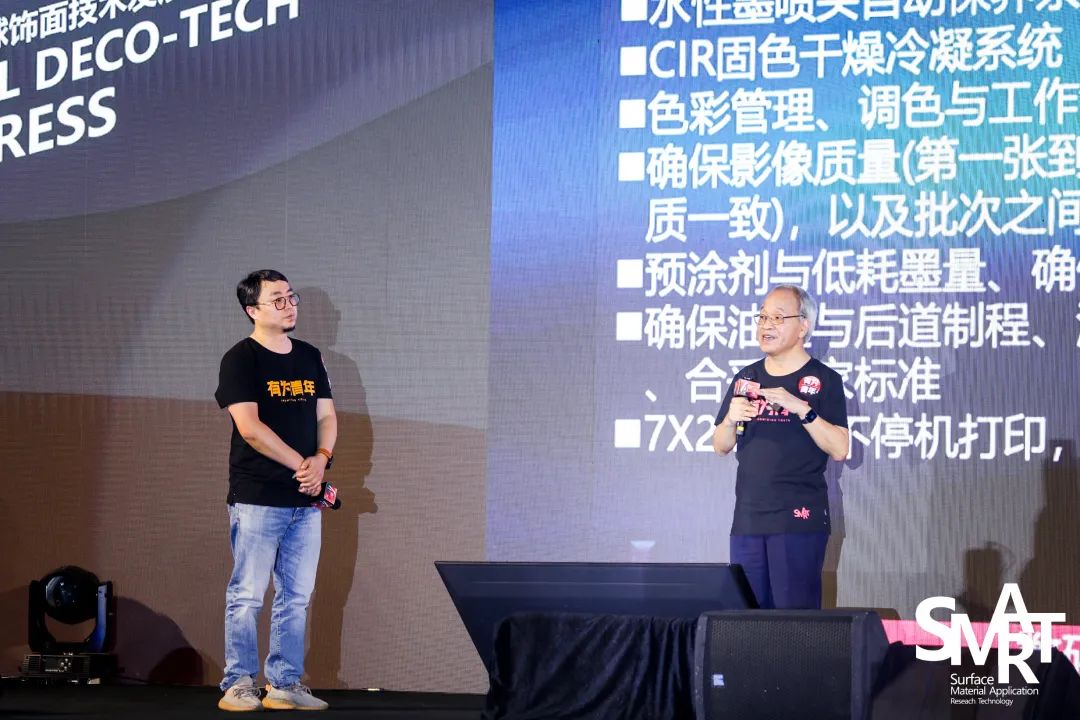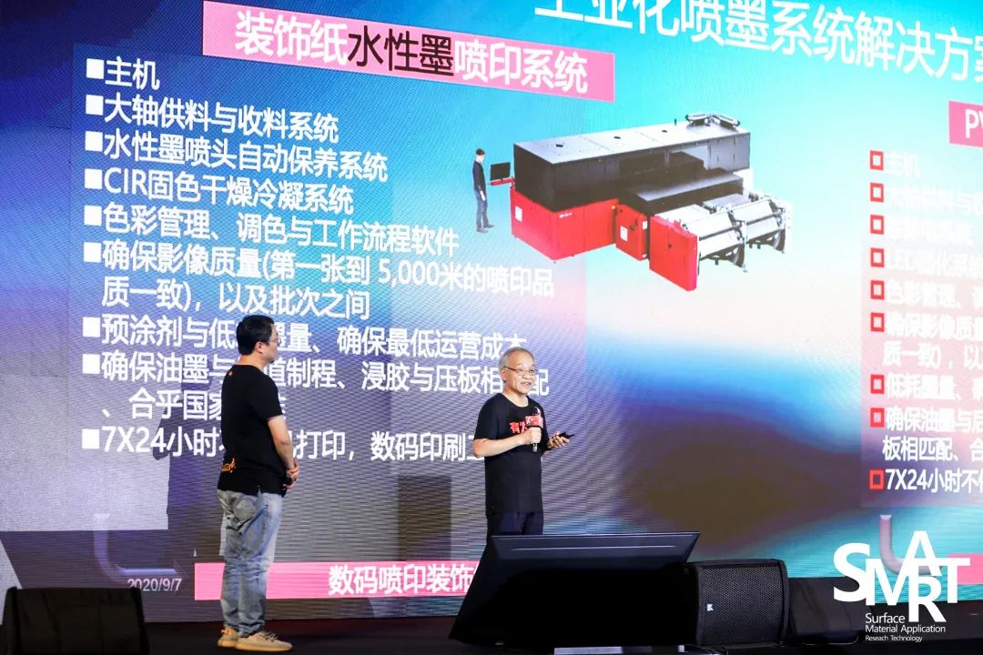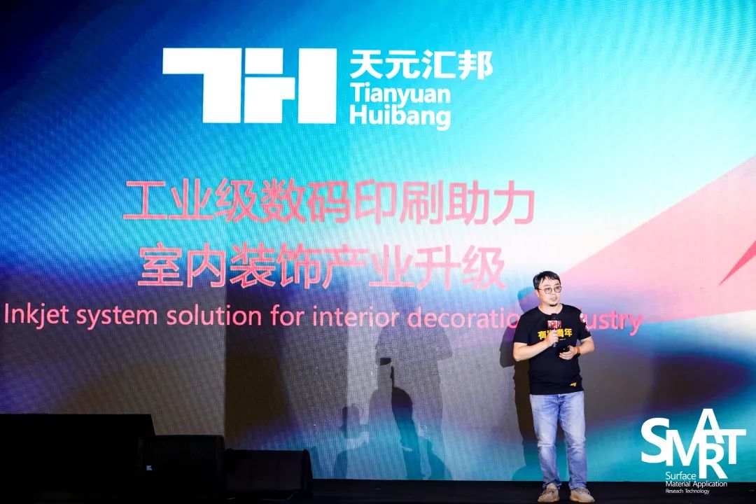 在峰會上,天元匯邦總裁張赟先生向大家介紹了全新的數碼印刷裝飾紙解決方案,并展示了數碼印刷為飾面行業帶來的變革。