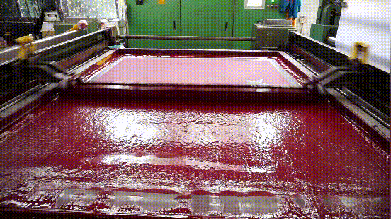 第一步是布料毛坯染色,然后送入刻版機(jī)器中;第二步則通過100℃的高溫,對原始色進(jìn)行升華印染;第三步開始將五角星印在旗面上;第四步則再次進(jìn)行100℃的烘干;第五步則將整面國旗送入壓力罐中接受150℃的升壓,歷經(jīng)45分鐘后才能出爐。