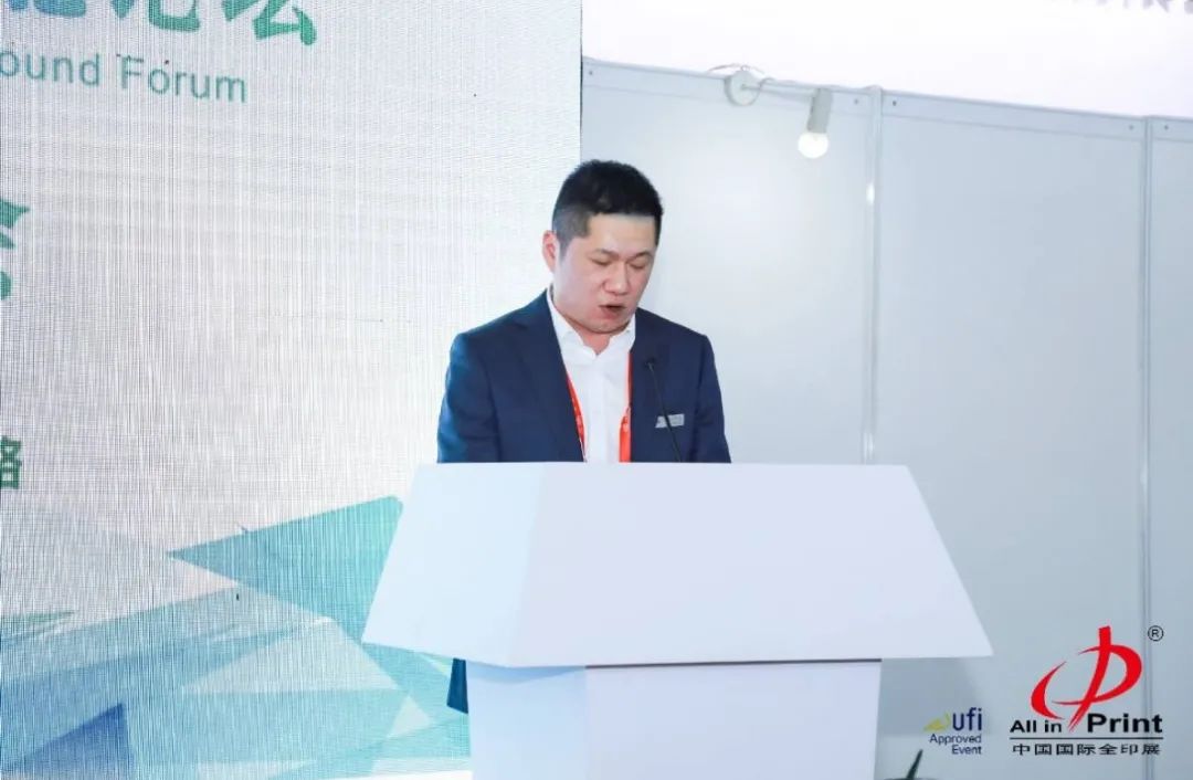 緊接著,陳亮亮先生代表發起單位中德集團發表講話,他首先簡要介紹了中德集團的品牌企業組成和在紙包裝領域取得的技術成果。此外,他還特別指出,在這新的市場形勢之下,就對如何推動中國紙包裝行業健康持續發展,如何盡快追趕世界先進水平提出倡議,縮小由于思想觀念、技術瓶頸乃至企業管理諸多方面因素形成的差距,應該成為所有紙包裝從業者目前的重要課題。并呼吁,與紙包裝界各位同仁一道,共同探討新形勢下,紙包裝企業的破局之路,開拓出一條數字時代下紙包裝行業新型的、實用的道路,為中國紙包裝事業盡一份綿薄之力!