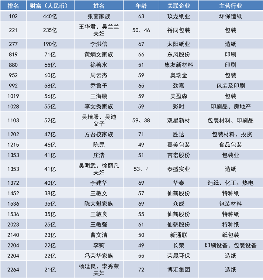 在膜拜這些富豪的過程中,我們也發(fā)現(xiàn)了熟悉的身影,多家印刷包裝造紙企業(yè)入榜。