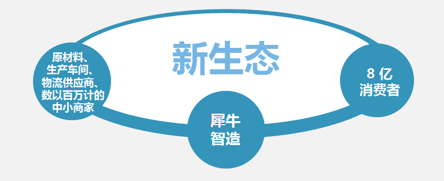 犀牛智造是在利用數字技術建構一個生態,前端連接阿里巴巴零售平臺上的8億消費者,后端連接原材料、生產車間、物流供應商和淘寶天貓上數以百萬計的中小商家。