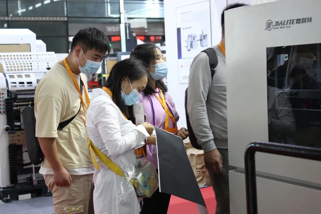 全新亮相的智能覆膜上光機,為我們完美演繹了從傳統的覆膜上光工藝到能按照使用者的需求進行模塊化定制,賦予了一機多元的最大靈活性。嘉利特定制能滿足在印后覆膜生產線上所有所需要完成的紙面整飾加工工藝,并已經為多個用戶提供全自動覆膜上光聯動生產線。此次嘉利特為觀眾帶來了整個展會唯一一臺自動上光機帶噴碼平臺和可遠程采集設備數據一鍵啟動的智能立式覆膜機,因設計吸睛,功能新穎,現場吸引了眾多觀眾駐足觀看。