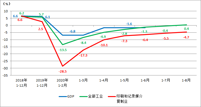 1-8月,印刷業(yè)的工業(yè)增加值累計(jì)增長(zhǎng)為-4.7%。全部工業(yè)的41個(gè)分行業(yè)中,已有16個(gè)行業(yè)工業(yè)增加值實(shí)現(xiàn)正增長(zhǎng),對(duì)比來看,印刷業(yè)仍面臨較大的恢復(fù)性增長(zhǎng)任務(wù)。