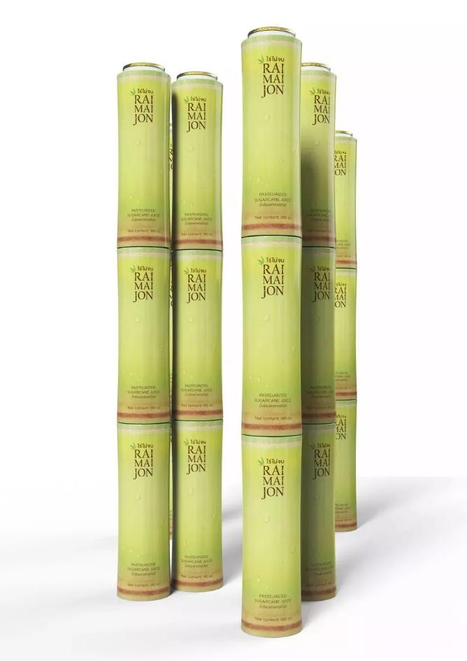 還有這款甘蔗汁產(chǎn)品,將整個(gè)瓶子設(shè)計(jì)成甘蔗質(zhì)感,瓶頭模擬了甘蔗節(jié)頭,還可以和其它瓶子接在一起,形似真正的甘蔗。這款設(shè)計(jì)也獲得了Marking Awards2020標(biāo)志功能獎(jiǎng)。