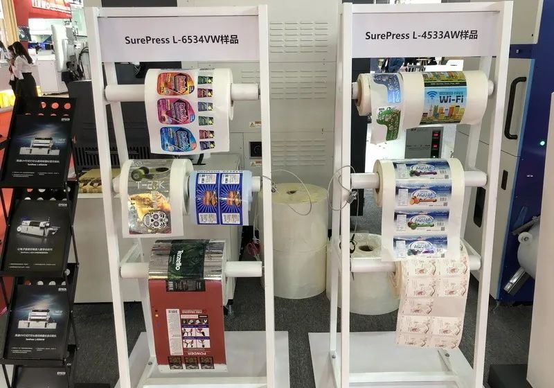 本次愛普生展出的SurePress L-4533AW更是讓標簽打印領域擁有了更大的延展性。SurePress L-4533AW在制作過程中不需要制版和材料預涂布,減少了大量的材料浪費和成本消耗,另外基于其七色AQ水性顏料樹脂墨水與微壓電打印頭,印刷用途非常廣泛,能夠打印電子面板、薄膜開關等。其高光、啞光和局部光油的高端印制效果,在化妝品包裝領域也備受歡迎。SurePress L-4533AW在高速模式下印刷速度十分驚人,甚至一分鐘可以打印8.2米*的紙張,這在全印刷領域都是高速打印的佼佼者。