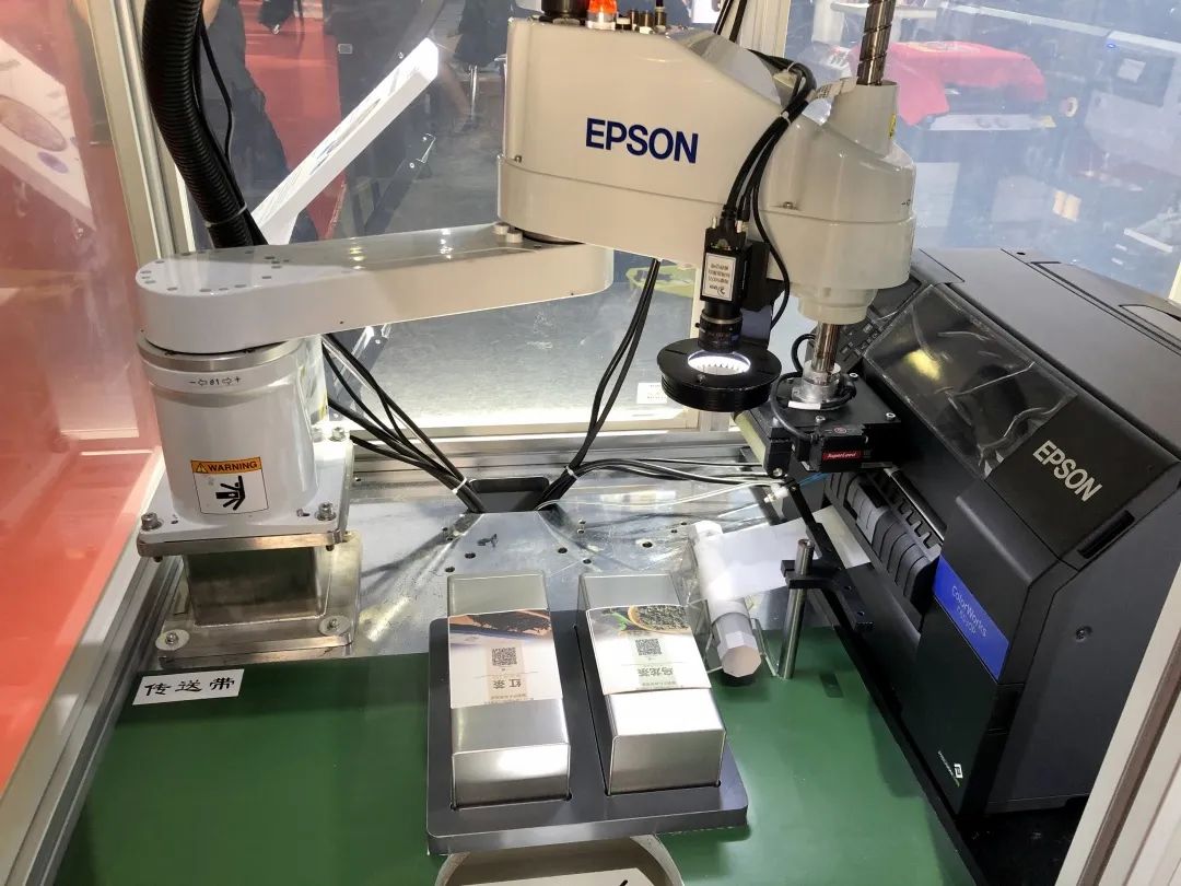 其中彩色標簽打印機CW-C6530P,不僅支持8英寸寬幅打印,同時打印機自帶的剝離器可自動實現標簽面材和底紙分離,配合愛普生SCARA系列機械手臂,可為流水線中的標簽打印、剝離、標簽內容在線檢測及貼標全流程提供一站式解決方案,滿足更廣的行業應用。